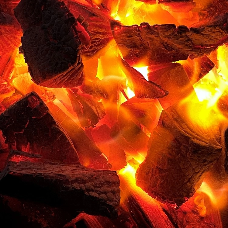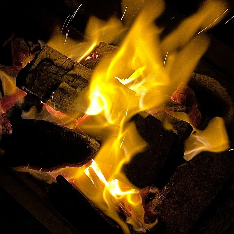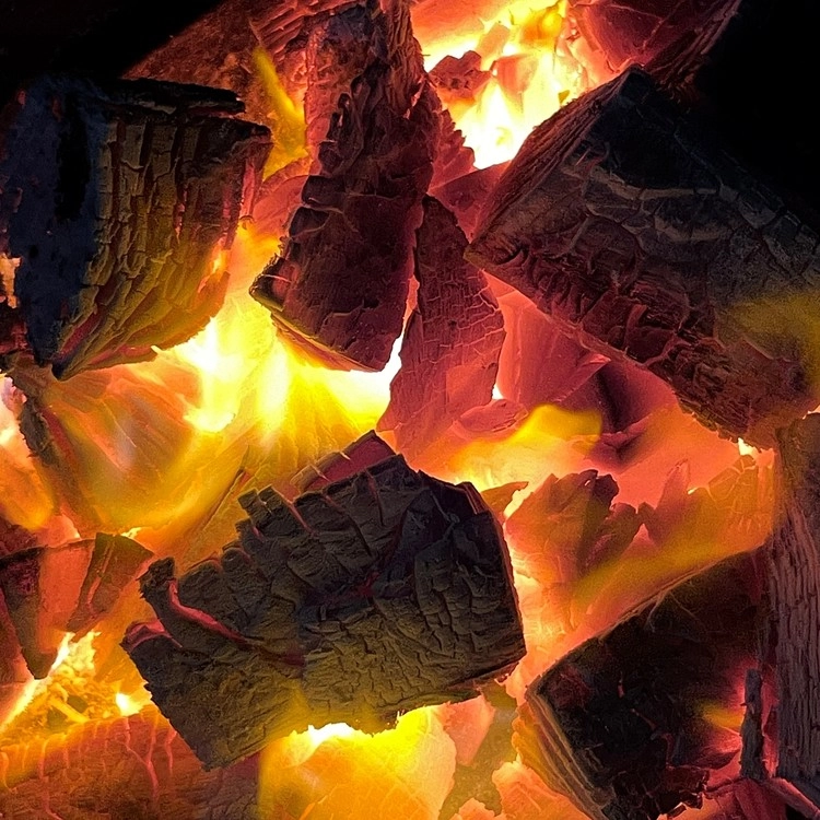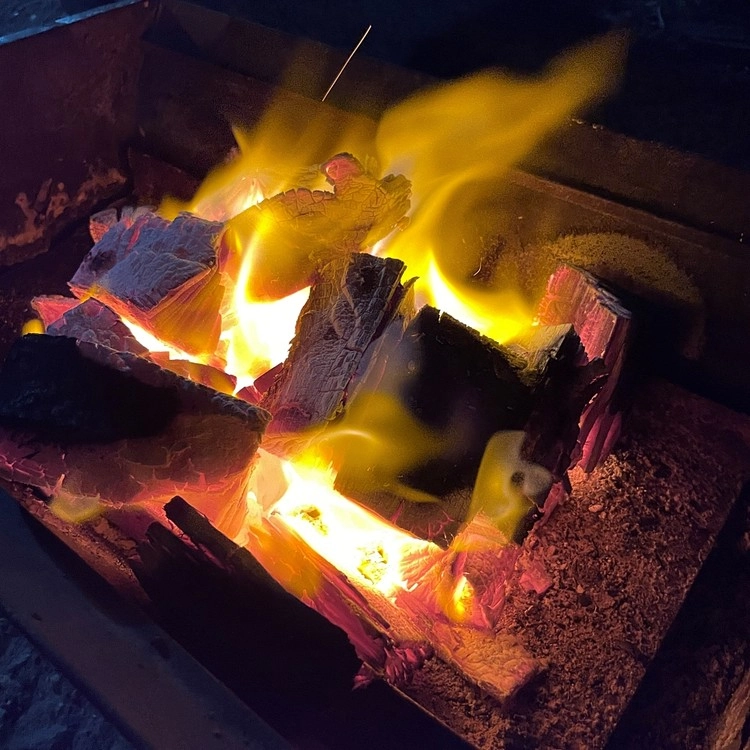 위 사진과 같이 한 방향으로 불을 붙여주셔야 점화시에 숯이 비교적 덜 튑니다.